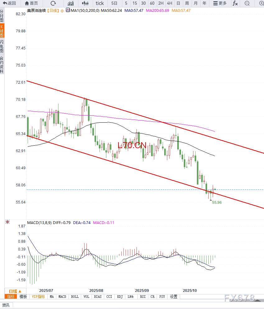若后市突破上方58.30压力,则有望打开进一步反弹空间;反之若跌破56.00近期低点,则行情可能重新转弱。