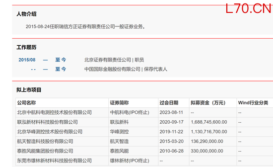 金石杂谈查询wind数据发现,田加力此前并未担任过首发保荐代表人,或者担任过首发保荐代表人,但并无成功经验。不过,他从2010年左右就参与了多项IPO项目,其中雄林新材和中航科电均IPO失败。