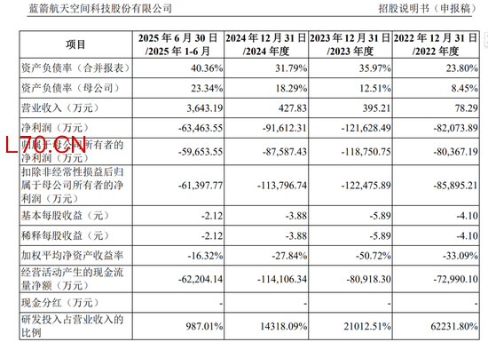 元股证券:ygzq.hk由于公司商业火箭处于商业化初期,且航空航天装备业属于技术密集型行业,公司需要持续烧钱加大研发提高先进性。2022年至2024年及2025年中期,公司分别实现归母亏损8.04亿、11.88亿、8.76亿以及5.97亿;扣非亏损分别为8.59亿、12.25亿、11.38亿以及6.14亿。