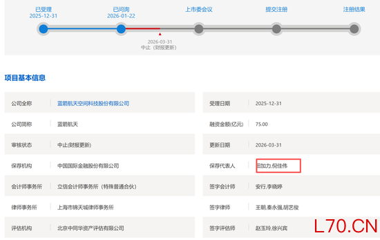 就在3月31日,蓝箭航天IPO突然中止,当然中止原因核心是需要财报更新,至于是否和保代有无关系就不得而知了。