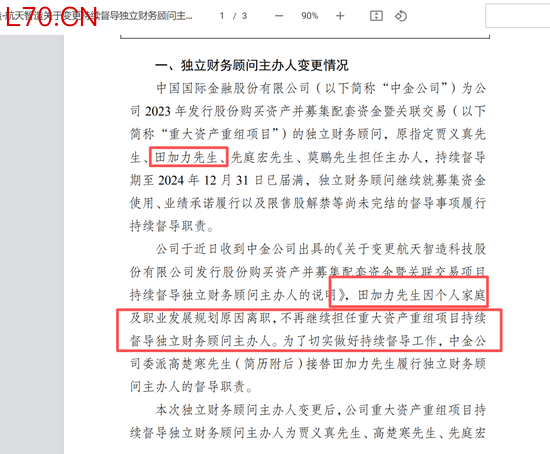 至于离职原因,田加利担任财务顾问主办人的上市公司航天智造发布公告,田加力因个人家庭及职业发展规划原因离职,不再继续担任资产重组持续督导独立财务顾问主办人。