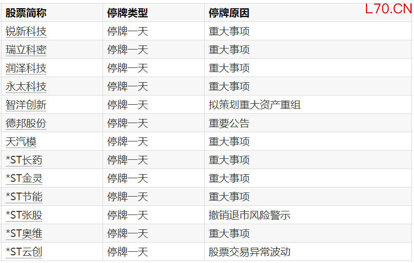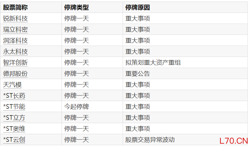 A股停牌提示:12股今日停牌题材轮动