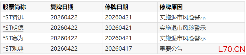 A股复牌提示:4股今日复牌太原证券配资行业平台