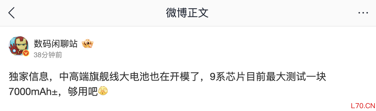 消息称某厂中高端旗舰线新机开模大电池:9 系芯片最大测试 7000mAh±,预计为华为旗下